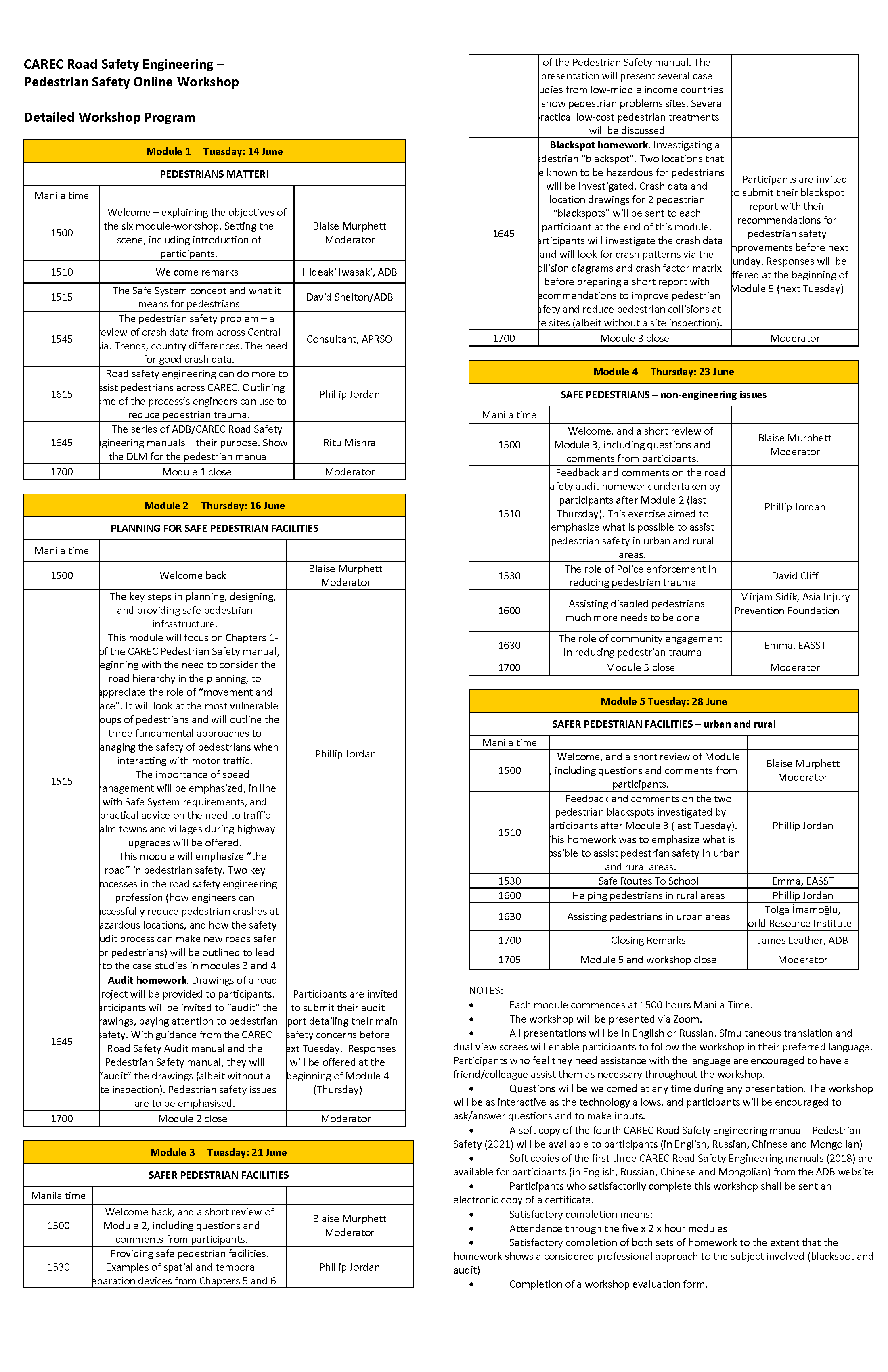 CAREC Road Safety Engineering – Pedestrian Safety Online Workshop